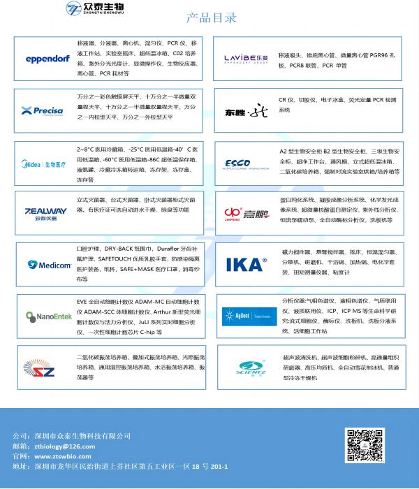 眾泰生物是實(shí)驗(yàn)室儀器設(shè)備、耗材及技術(shù)服務(wù)商,我們不只賣產(chǎn)品,更注重售后服務(wù)和口碑!如果您的實(shí)驗(yàn)室剛好有需求,而您也希望產(chǎn)品質(zhì)量有保證,售后更無憂,那么就來找我們吧!